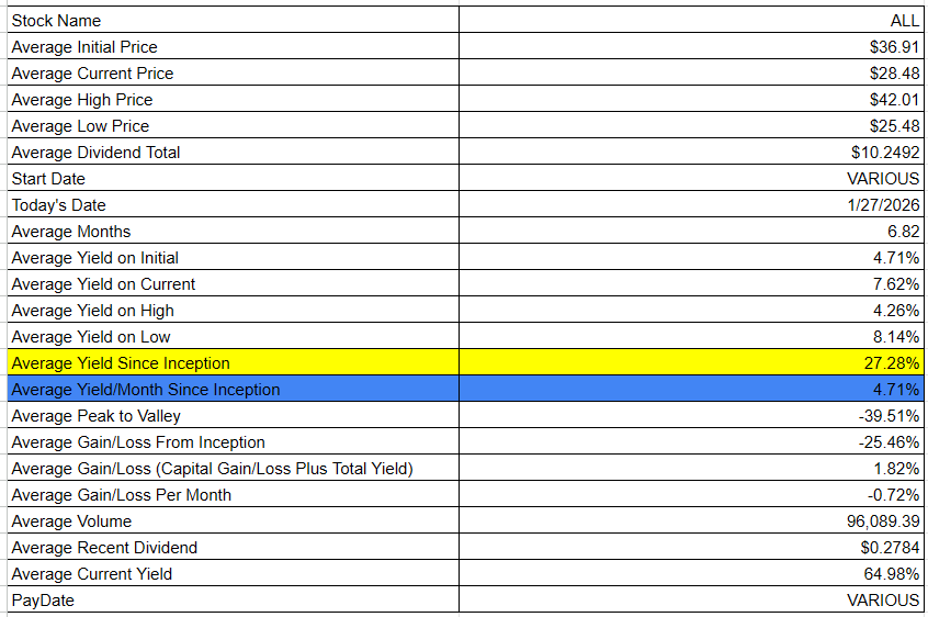 WEEKLY PAYERS -- Yield + Capital Gain Analysis 1/27/2026