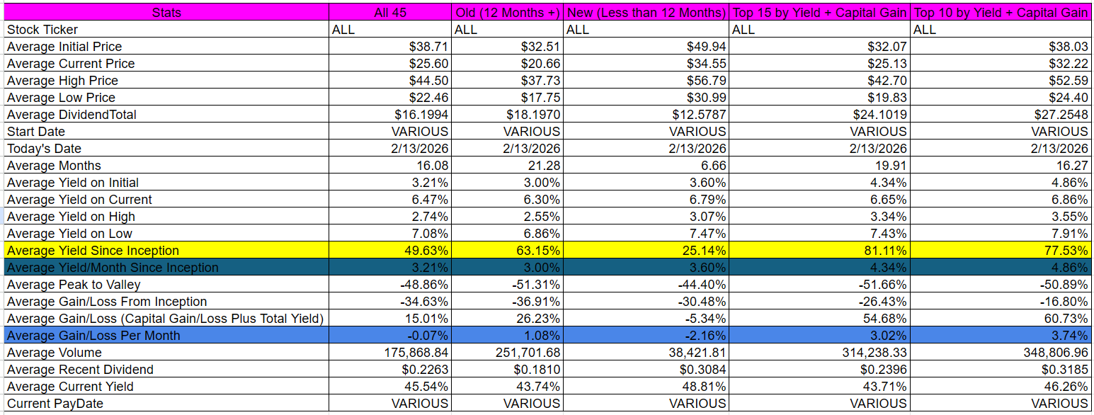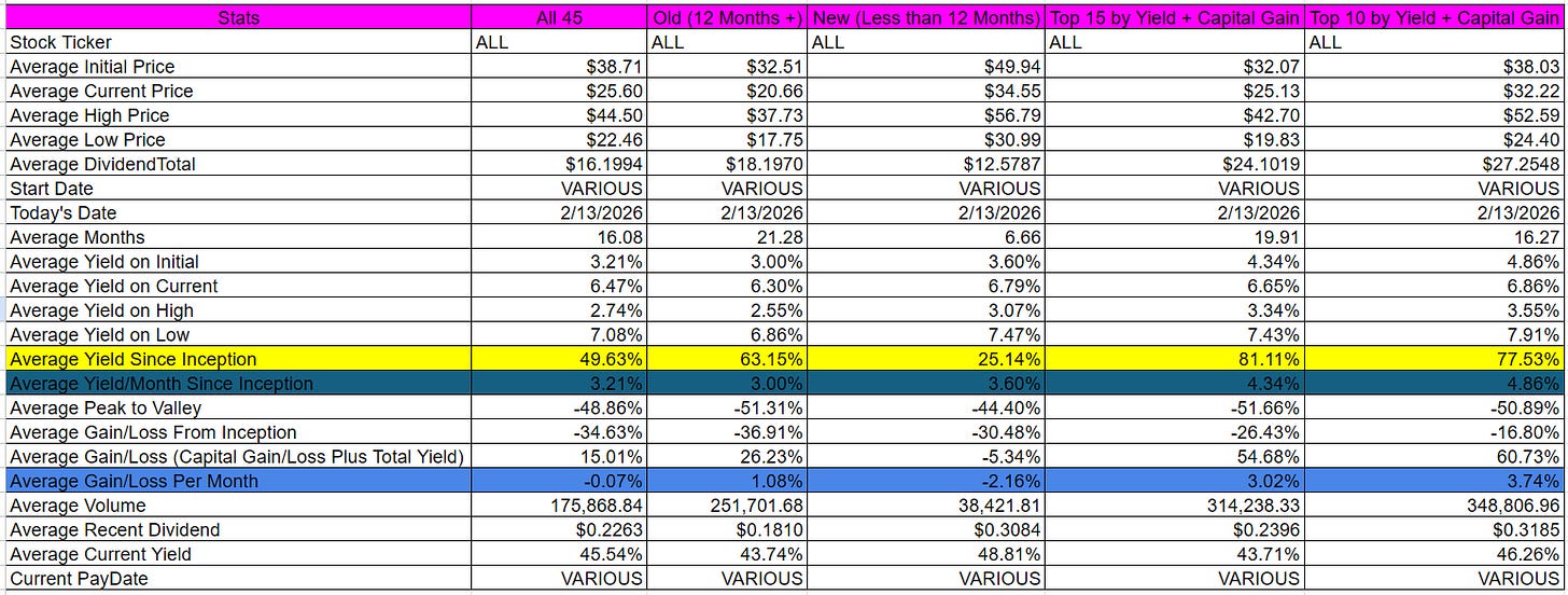 YIELDMAX -- Yield + Capital Gain Analysis 2/13/2026