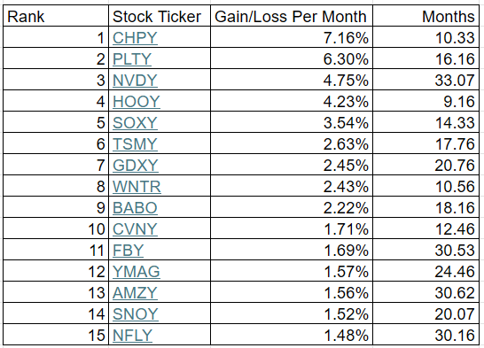 ABNY, AIYY, AMDY, CONY, CRSH, DIPS, FIAT, MRNY, MSTY, OARK, PYPY, TSLY, ULTY, XYZY, YBIT.