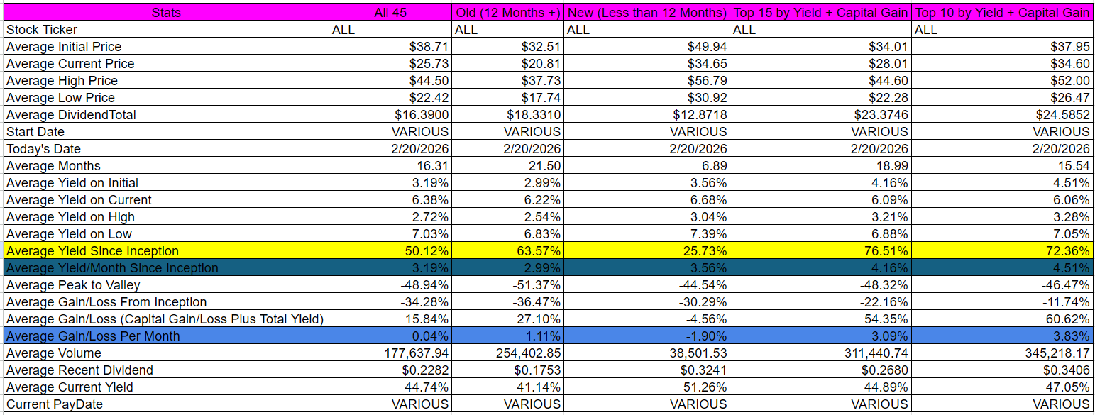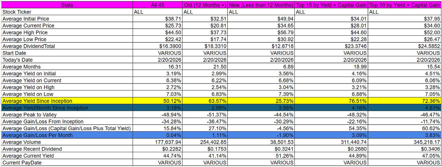 YIELDMAX -- Yield + Capital Gain Analysis 2/20/2026